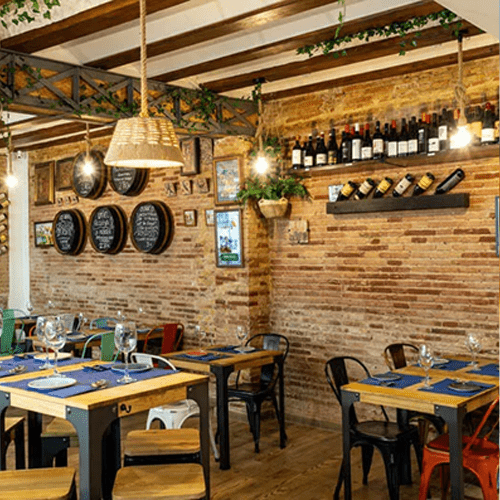 Schon beim Betreten fühlt man sich in der Zeit zurückversetzt. Die Bodega besticht durch ihre historische Architektur: Ein eindrucksvoller Steinbogen aus dem 15. Jahrhundert überspannt den Raum, während dunkle Holzbalken und typische valencianische Fliesen (Socarrats) an den Wänden für eine gemütliche, fast private Atmosphäre sorgen. Es ist der perfekte Ort, um dem Trubel der Stadt zu entfliehen.