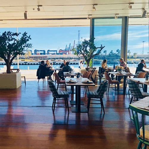 Das La Marítima ist ein Juwel für alle, die Design, Licht und das Meer lieben. Es gehört zur renommierten Grup El Alto und befindet sich in einer der ikonischsten Locations der Stadt. Schon beim Betreten beeindruckt das Restaurant durch seine riesigen Glasfronten, die den Raum mit Tageslicht fluten und einen ungehinderten Blick auf den Kanal und die vorbeiziehenden Segelboote bieten. Die Einrichtung ist inspiriert von den traditionellen Fischerhütten und den Farben des Meeres – viel helles Holz, blau-weiße Akzente und eine entspannte, elegante Atmosphäre.